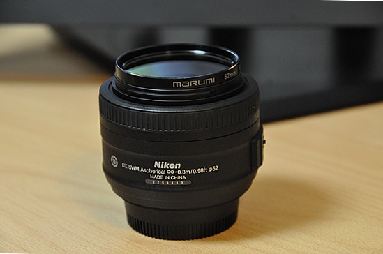 こちらは Nikkor  35mm に、52φのマルミのUVフィルターを装着した様子です。