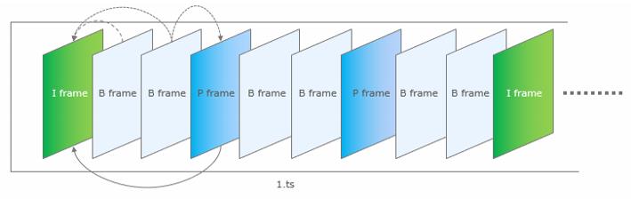また、安定した再生を行うには、他のセグメントに頼らず、セグメント単体で再生できる事が望ましいため、通常、セグメントは最低一つの I-Frameを含んでいます。
