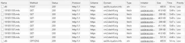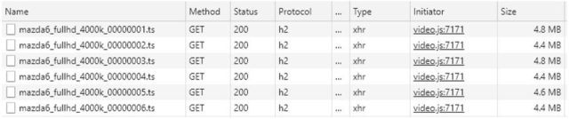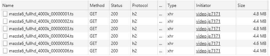 上記は Chrome の Debug Tool で HLS動画の再生中の ts ファイルのリクエストを示したものです。
